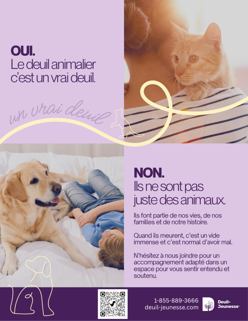 Saviez-vous que Deuil-Jeunesse offre des services d’accompagnement pour les personnes endeuillées de leur animal?